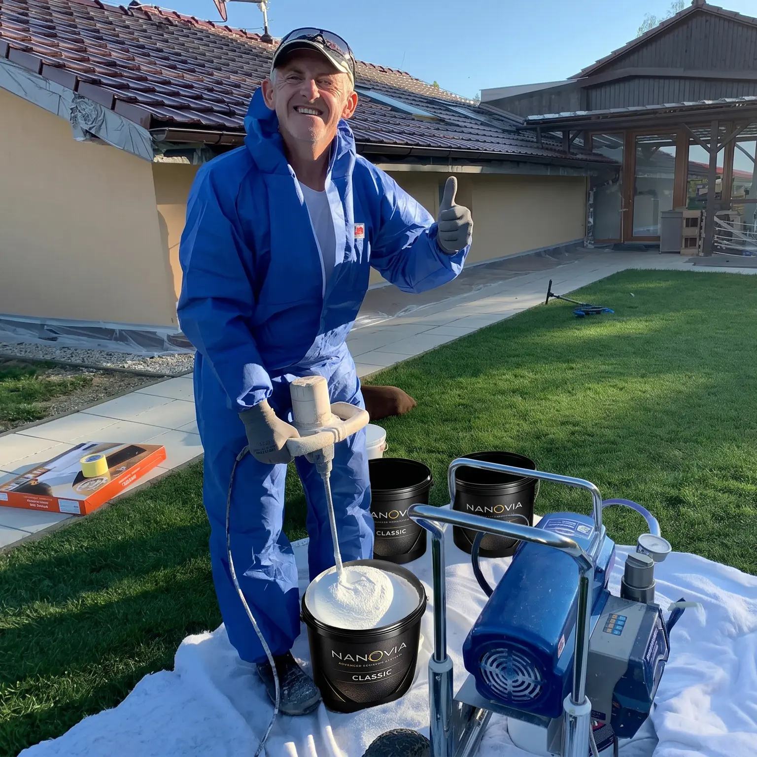Aplikace termoizolace na rodinný dům Karlové Vary. Použitý materiál na fasádu domů 2,5mm NANOVIA Classic. Dodatečné zateplení domu, když na severní straně domu vznikalo kondenzace na zdivu s klasický izolaci. Po nanesení termoizolační vrstvy NANOVIA Classic a NANOVIA Facade jsme zabránili prostupu tepla a tím pádem jsme vyřešili problém s kondenzací. Po aplikaci termoizolace jsme po dohodě s majtelem a výberu ralky aplikovali klasickou akrylovou barvu.